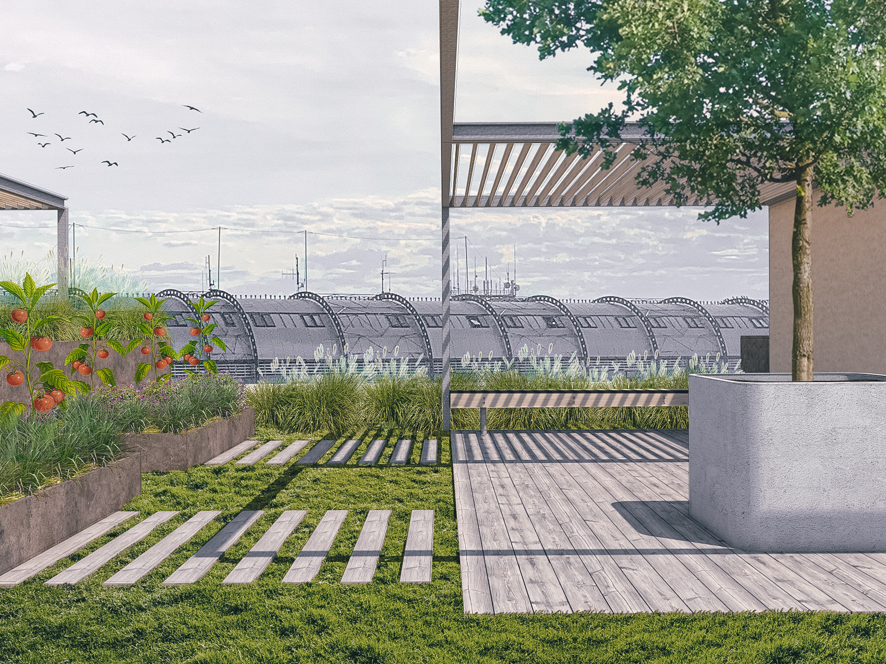 Zeleň v mestách, ekológia, zadržiavanie dažďovej vody, zveľaďovanie starších bytových domov a všeobecná otázka budúcnosti sídlisk. Na tieto a mnohé iné otázky sa snaží odpovedať ideový návrh terasy, resp. záhrady, na streche jedného z bytových domov v Trnave.